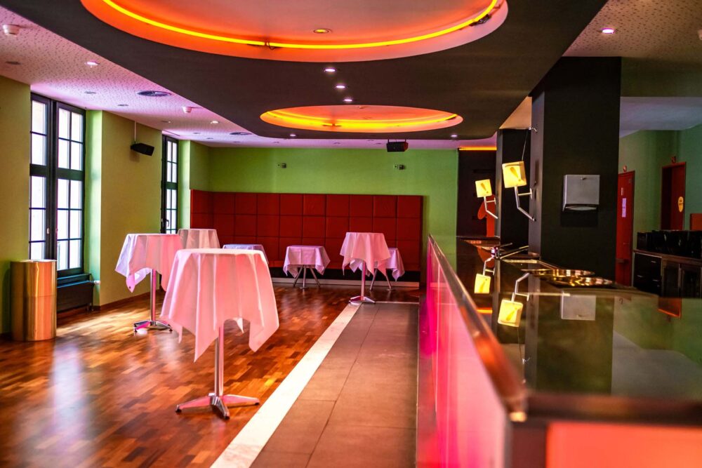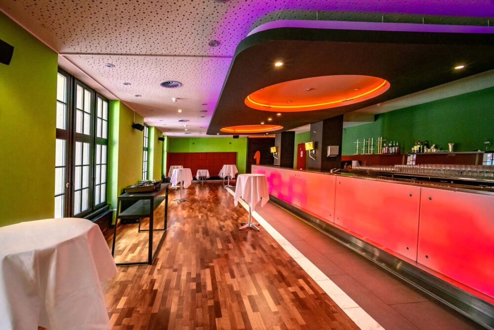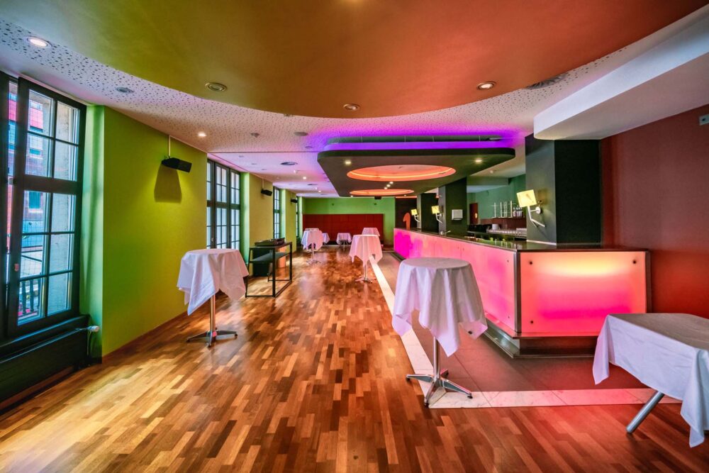 Ob für lockere After-Work-Events, exklusive Apéros oder private Feiern – die Ciné Bar im Küchlin Variété Theater bietet den idealen Rahmen. Mit DJ-Equipment und grossen TVs (65″ und 85″) ausgestattet, lässt dieser Raum für bis zu 100 Gäste keine Wünsche offen. Tageslicht durchflutet die Bar und schafft eine angenehme, einladende Atmosphäre. Ob entspannte Lounge-Vibes oder lebhafte Partystimmung – hier kannst Du Dein Event ganz nach Deinen Vorstellungen gestalten. Zudem eignet sich dieser Ort ideal für Teambuilding-Events mit Cocktail-Workshops, die das Erlebnis abrunden.